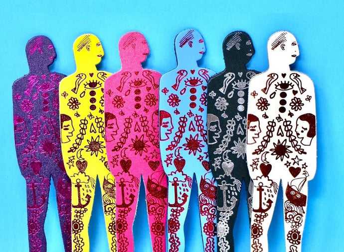 Tattooed Nudist Man Leather Bookmark